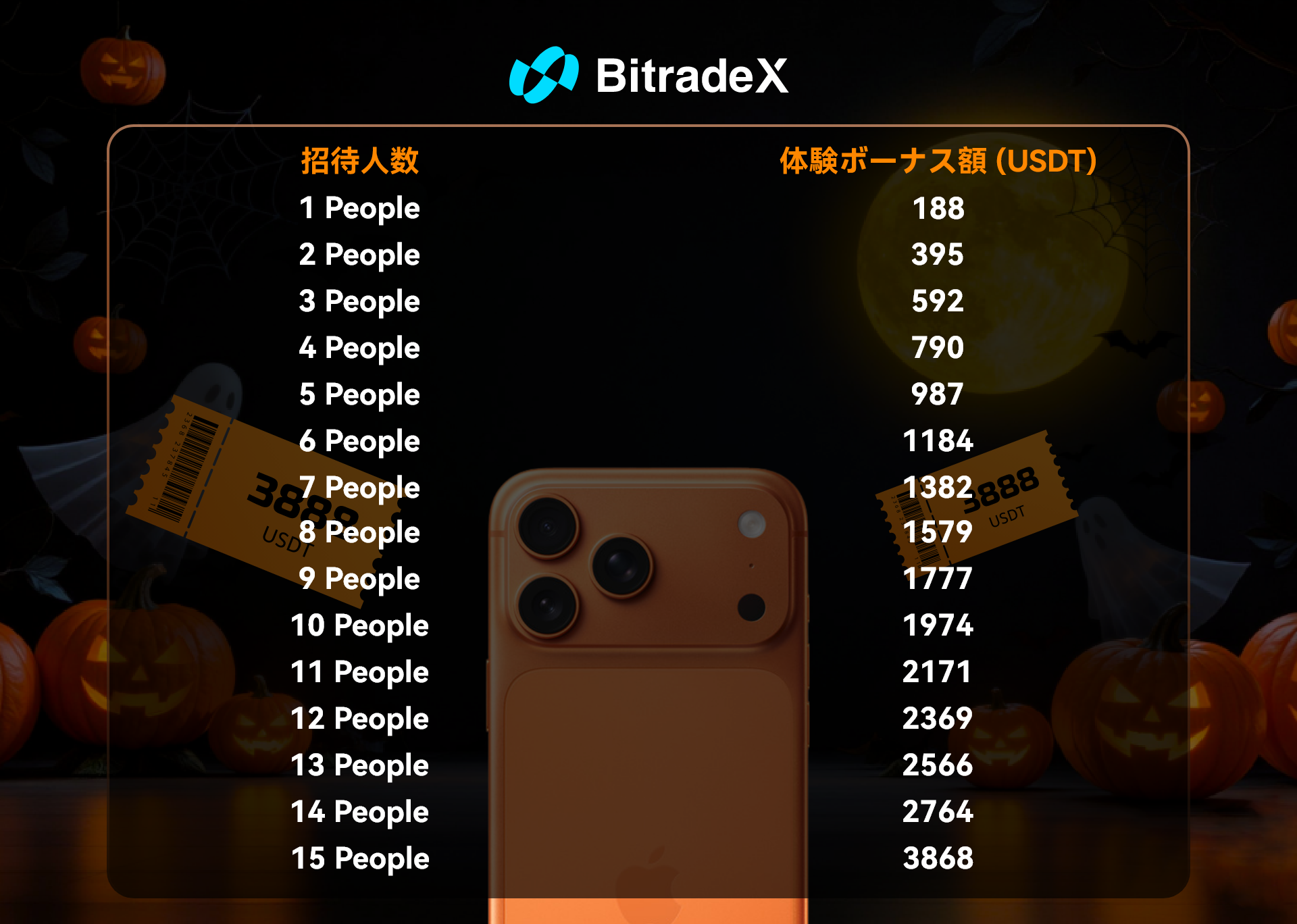 イベント期間中、1人の友達を招待して登録し、任意の AiBot 定期運用プラン(AI daily は除く)を完了すると、188USDT の【AiBot 定期投資 30D プロダクト 7日間体験券】を獲得できます。招待した人数が多いほど、報酬も増加します!イベント終了後、最大3888 USDT の報酬が得られます。公平性を保つため、最大15人の有効な招待が対象となります。
