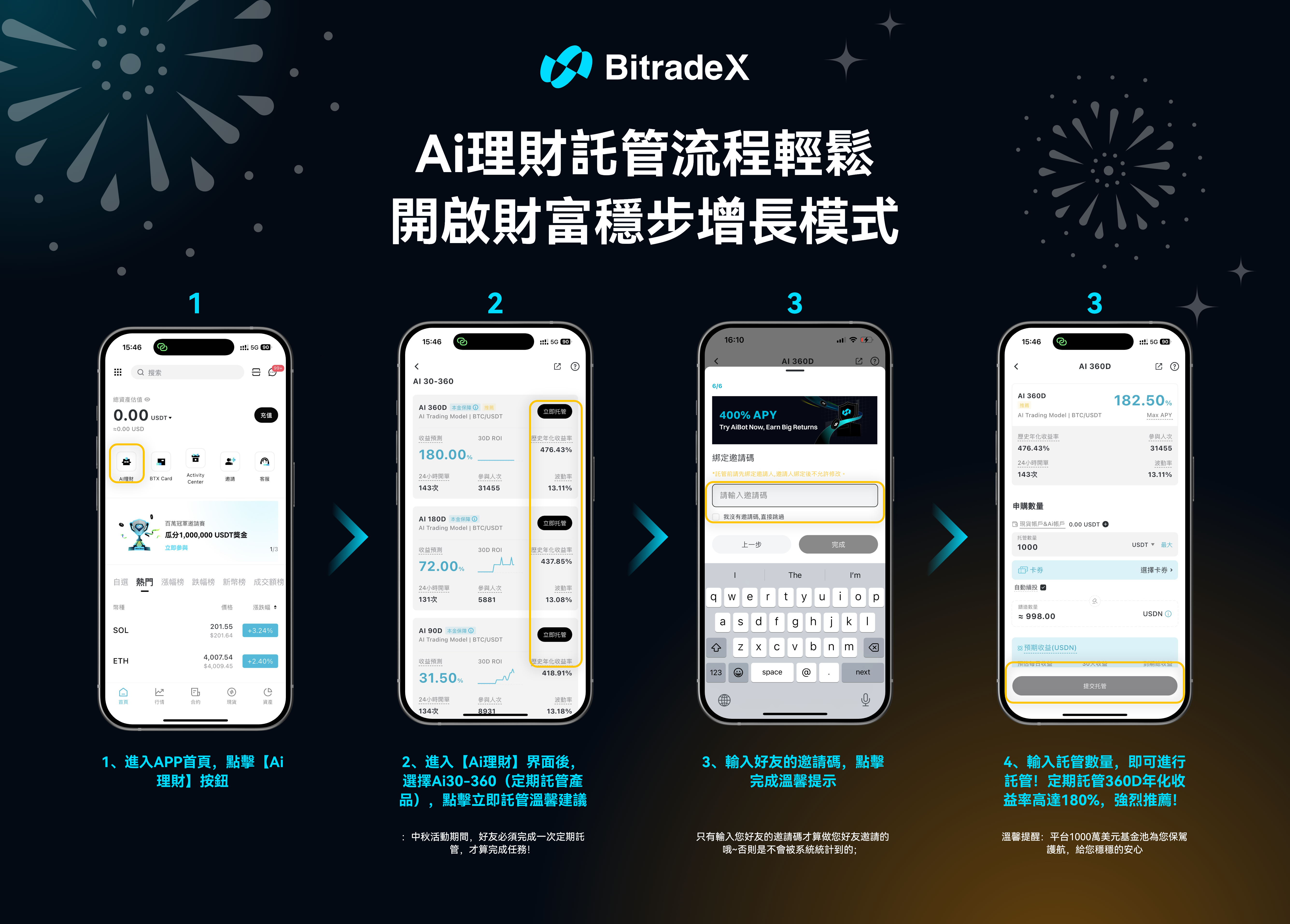 - 如有作弊行為(刷量、虛假邀請等)將取消資格,最終解釋權歸 BitradeX 平台所有。